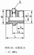 錐密封鋼絲(及棉線)編織膠管總成 錐密封膠管接頭螺紋接頭 錐密封膠管接頭螺紋接頭JB/T(6144.1-2)-92 錐(及 密55° 封非 膠密 管封 接管 頭螺 公紋 制) 螺接 紋頭 標(biāo)記示例(1)公稱通徑 DN6的錐密封膠管接頭55°非密封管螺紋接頭: 錐接頭6/G1/8 (2)公稱通徑DN10,端連接螺紋d=M14×1.5的 錐密封膠管公制螺紋接頭:錐接頭10/M14×1.5 公稱 通徑 DN (a)公制 螺紋 (b)55° 圓錐管 螺紋接頭 (a)、(b) 接頭d d1 do S l1 l2 L 重量 kg 4 M10×1 G1/8 M16×1.5 2.5 18 12 20 31 0.03 6 M10×1 G1/8 M18×1.5 3.5 18 12 20 31 0.04 8 M10×1 G1/8 M20×1.5 5 18 12 21 34 0.06 10 M14×1.5 G1/4 M22×1.5 7 24 14 22 35 0.08 10 M18×1.5 G3/8 M24×1.5 8 27 14 25 39 0.10 15 M22×1.5 G1/2 M30×2 10 30 16 26 40 0.14 20 M27×2 G3/4 M33×2 13 41 18 30 46 0.32 20 M27×2 G3/4 M36×2 17 41 18 37 52 0.56 25 M33×2 G1 M42×2 19 55 20 38 55 0.71 32 M42×2 G11/4 M45×2 24 55 22 41 58 0.78 40 M48×2 G11/4 M56×2 30 60 24 44 63 0.96 50 M60×2 G2 M68×2 40 75 26 50 71 1.14 錐(及 密60° 封非 膠密 管封 接管 頭螺 55°紋公制) 螺接 紋頭 標(biāo)記示例(1)公稱通徑 DN6的錐密封膠管接頭55°非密封管螺紋接頭: 錐接頭6/G1/8 (2)公稱通徑DN10,端連接螺紋d=M14×1.5的 錐密封膠管公制螺紋接頭:錐接頭10/M14×1.5 公稱 通徑 DN (a)55°密封 管螺紋接頭 (b)60°密封 管螺紋接頭 (a)、(b) d l1 d l1 d1 do S l2 L 重量 kg 4 R1/8 4 Z1/8 4.572 M16×1.5 2.5 18 17 29 0.03 6 R1/8 4 Z1/8 4.572 M18×1.5 3.5 18 17 29 0.04 8 R1/8 6 Z1/8 4.572 M20×1.5 5 18 18 30 0.06 10 R1/4 6.4 Z1/4 5.080 M22×1.5 7 24 22 34 0.08 10 R3/8 6.4 Z3/8 6.096 M24×1.5 8 27 24 38 0.10 15 R1/2 8.2 Z1/2 8.128 M30×2 10 30 27 41 0.14 20 R3/4 9.5 Z3/4 8.611 M33×2 13 41 28 44 0.32 20 R3/4 9.5 Z3/8 8.611 M36×2 17 41 38 56 0.56 25 R11 10.4 Z11 10.16 M42×2 19 55 39 59 0.71 32 R111/4 12.7 Z111/4 10.66 M45×5 24 55 44 64 0.78 40 R111/2 12.7 Z111/2 10.66 M56×2 30 60 46 68 0.96 50 R12 15.9 Z12 11.07 M68×2 40 75 1.14 膠 管 接 頭 推 薦 長度(參考) 裝配長L 320 360 400 450 500 560 630 710 800 900 1000 1120 1250 1400 偏差 +20 0 +25 0 +30 0 裝配長L 1600 1800 2000 2240 2500 2800 3000 4000-5000 ≥5000 偏差 +40 0 +50 0 上一條 雙向接頭體、焊接接頭體 錐密封鋼絲編織膠管總成 下一條 其它管接件