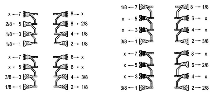 六、使用說明 1、在系統(tǒng)中推薦最多通過“兩級”來進(jìn)行潤滑劑的分配。 2、排出油口1和2始終不能關(guān)閉。 3、始終使用原配的排出油口油嘴零件組。 4、裝拆調(diào)換油嘴零件時要從每側(cè)的上部或最下部吐出口開始。 5、如果吐出口要補(bǔ)充關(guān)閉,合并潤滑劑量(改流到下面低數(shù)的吐出口排出),必須去掉油嘴體,用M10×1螺塞封堵按下圖范例連接。