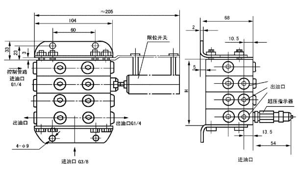 1、分配器為單柱塞多片組合結構,每片有兩個出油口,分為JPQ1、JPQ2、JPQ3 和JPQ4四種形式。 ①每種形式的分配器,一般按額定給油量相等的單片組合,需要時也可將額定油量不同的單片混合組合。 ② JPQ4型組合時需有一片控制片,此片無給油口。 ③相鄰的二個或二個以上的給油口可以合并成一個給油口給油,此給油口的給油量為所有被合并給油口的額定給油量之和。 2、JPQ1型和JPQ2型分配器在系統(tǒng)中串聯(lián)使用,JPQ3型和JPQ4型分配器在系統(tǒng)中并聯(lián)使用。 3、分配器均裝有一個運動指示桿,用于觀察分配器工作情況。根據(jù)需要還可以安裝限位開關,對潤滑系統(tǒng)進行控制和監(jiān)視。 4、JPQ2型、JPQ4型分配器根據(jù)需要可以安裝超壓指示器。