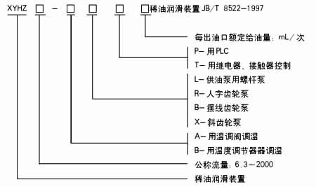 | 七、裝置標(biāo)記示例 a)裝置,公稱流量6.3L/min,用溫度調(diào)節(jié)器調(diào)溫,供油泵用擺線齒輪泵,用繼電器、接觸器控制,不帶壓力罐裝置的標(biāo)記為: XYHZ6.3-BBT稀油潤(rùn)滑裝置JB/T8522-1997 b)裝置,公稱流量315L/min,用溫度調(diào)節(jié)器調(diào)溫,供油泵用人字齒輪油泵,用繼電器、接觸器控制,不帶壓力罐裝置的標(biāo)記為: XYHZ315-BRT稀油潤(rùn)滑裝置JB/T8522-1997 c)裝置,公稱流量500L/min,用溫度調(diào)節(jié)器調(diào)溫,供油泵用斜齒輪油泵,用繼電器、接觸器控制,不帶壓力罐裝置的標(biāo)記為: XYHZ500-BXT稀油潤(rùn)滑裝置JB/T8522-1997 d)裝置,公稱流量1000L/min,用調(diào)溫閥調(diào)溫,供油泵用螺桿泵,用PLC控制,帶有壓力罐裝置的標(biāo)記為: XYHZ1000-ALPP稀油潤(rùn)滑裝置JB/T8522-1997 | ||||||||||||||||||||||||||||||||||||||||||||||||||||||||||||||||||||||||||||||||||||||||||||||||||||||||||||||||||||