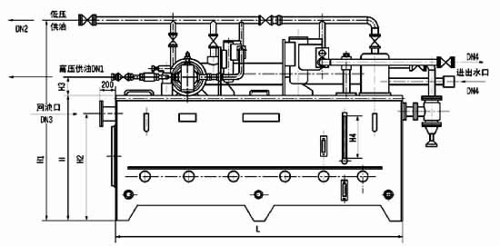 | 本油站為整體式,由油箱、兩臺(tái)低壓油泵、一臺(tái)高壓油泵、二臺(tái)雙筒網(wǎng)片式過(guò)濾器、回油磁網(wǎng)過(guò)濾裝置、列管式油冷卻器、各種控制閥門、管道以及電接點(diǎn)壓力表、鉑熱電阻等組成。 工作原理基本上也和A系列相同;但B系列的低壓油經(jīng)過(guò)過(guò)濾和冷卻后外供時(shí),一部分低壓油通過(guò)旁路再經(jīng)過(guò)一個(gè)雙筒過(guò)濾器后才進(jìn)入高壓泵的吸油口,以提高高壓油的清潔度等級(jí);但應(yīng)注意當(dāng)?shù)蛪汗┯蛯?shí)際壓力較小時(shí)(例如小于0.2MPa時(shí)),由于后一過(guò)濾器同樣也有壓差損失(也隨時(shí)間逐步增大),為保證高壓油泵順利吸入,吸入口應(yīng)始終保證正壓(當(dāng)后過(guò)濾器切換前壓差達(dá)最大時(shí)也必須滿足這一要求);除 流量和A系列有很大不同外,最主要特點(diǎn)(結(jié)構(gòu)特征)為高壓泵吸口前有另一臺(tái)過(guò)濾器。 其他工作原理和操作控制可參見(jiàn)A系列所述。 | |||||||||||||||||||||||||||||||||||||||||||||||||||||||||||||||||||||||||||||||||||||||||||||||||||||||||||||||||||||||||||||||||||||||||||||||||||||||||||||||