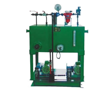 TBY-12擋輪液壓站裝有兩套可調(diào)流量微量計(jì)量泵,正常工作時(shí),油泵一臺工作,一臺備用,在特殊需要時(shí)亦可允許同時(shí)啟動(dòng)兩泵,系統(tǒng)最高壓力為10MPa,最低壓力為4MPa,油缸上行速度由變量微量油泵來調(diào)定,油缸下行時(shí)的速度由節(jié)流閥來調(diào)定,油溫是由裝在油箱上的雙金屬電接點(diǎn)溫度計(jì)來控制電加熱器的關(guān)閉,油站系統(tǒng)有一臺精度為10mm的精過濾器,確保液壓油的清潔。過濾器壓差達(dá)到0.35MPa時(shí)報(bào)警,并及時(shí)更換過濾器濾芯。