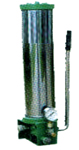 七、使用說(shuō)明 1、手動(dòng)潤(rùn)滑泵應(yīng)垂直安裝,泵的上方及周?chē)粲兄甘緱U上升及補(bǔ)脂操作的空間,需在室外或環(huán)境惡劣的場(chǎng)合安裝時(shí),應(yīng)將泵置于防護(hù)罩內(nèi)。 2、貯油器內(nèi)無(wú)潤(rùn)滑脂時(shí),不許操縱手柄,下油位應(yīng)及時(shí)補(bǔ)脂。 3、向貯油器內(nèi)加注潤(rùn)滑脂,必須使用專用的手動(dòng)或電動(dòng)加油泵從加油口充填。 4、泵使用壓力不許超過(guò)泵的公稱壓力。 5、泵加油口的過(guò)濾網(wǎng)應(yīng)定期檢查、清洗。