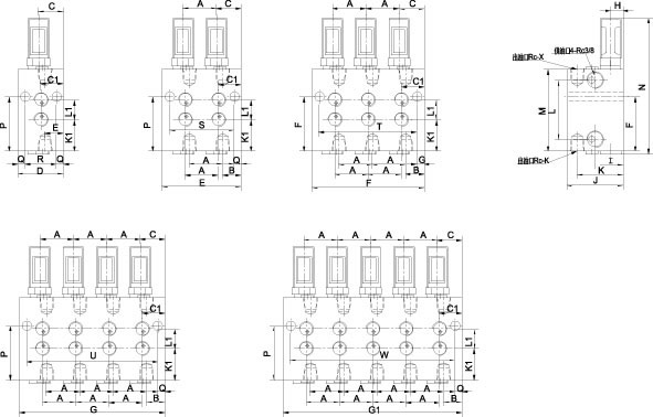 該系列雙線分配器在正面和上、下面均設(shè)有出油口,為雙向出油形式,正面上排與上面對(duì)應(yīng)出油口貫通,正面下排與下面對(duì)應(yīng)出油口相貫通,根據(jù)配管方向需要任意選擇,分配器活塞正反向動(dòng)作分別從上下側(cè)出油口排出潤滑脂一次,為方便增大倍量的給油量,易改奇數(shù)出油,在上下對(duì)應(yīng)的出油口間還設(shè)有合二為一的結(jié)構(gòu),使用時(shí)只需擰開下出口內(nèi)的螺釘,不用的出口用R1/4 螺塞封堵即可。KW系列雙線分配器可以從指示桿的動(dòng)作直接觀察分配器的工作情況,還可以通過調(diào)整螺釘在規(guī)定的范圍內(nèi)方便地調(diào)整各個(gè)出油口的給油量。