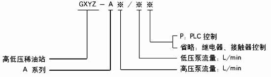 | 如采用A系列,高壓流量為2.5L/min;高壓壓力為31.5MPa,低壓供油壓力為0.4MPa;而低壓供油量為40L/min的高(低)壓稀油站,采用PLC控制的則按如下方法標(biāo)注:GXYZ-A2.5/40.P | |||||||||||||||||||||||||||||||||||||||||||||||||||||||||||||||||||||||||||||||||||||||||||||||||||||||||||||||||||||||||||||||||||||||||||||||||||||||||||||||||||||||||||||||