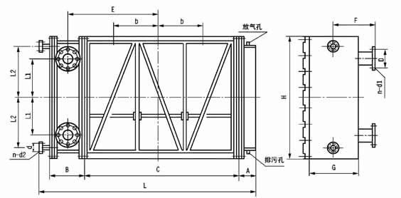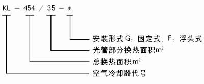 KL型空氣冷卻器 一、使用條件KL型空氣冷卻器適用于水源不足或水質(zhì)較差的現(xiàn)場(chǎng),它利用內(nèi)部流動(dòng)的載冷劑通過(guò)冷卻器表面吸收空氣中的熱量,使空氣降溫;也可以利用空氣冷卻內(nèi)部工作介質(zhì),使工作介質(zhì)降到要求的溫度。空氣冷卻器廣泛應(yīng)用于石油化工、冶金、礦山、電力、輕工機(jī)械等行業(yè)的液壓潤(rùn)滑系統(tǒng)及冷卻換熱系統(tǒng)??諝饫鋮s器采用空氣為冷卻介質(zhì),無(wú)污染,減少水的消耗,具有一般冷卻器所沒(méi)有的優(yōu)點(diǎn)。 二、技術(shù)參數(shù) 參數(shù) 換熱面積m2 工作壓力MPa 工作溫度℃ 壓力降MPa 換熱系數(shù)W/m2.K 通徑mm 型號(hào) KL-100 100 0.63 ≤100 ≤0.01 50 95 KL-145 145 KL-230 230 70 KL-288 288 KL-350 350 KL-410 410 80 KL-454 454 KL-500 500 三、型號(hào)說(shuō)明 四、外形尺寸 浮頭式空氣冷卻器 型號(hào) A B C D E b f G H L L1 L2 n-d1 n-d2 d KL-100 1400 170 185 320 800 1680 4-Φ18 KL-145 2000 170 185 320 800 2280 4-Φ18 KL-230 150 250 1120 140 965 540 350 490 1358 1620 450 600 4-Φ19 65 KL-288 150 250 1400 140 825 450 350 490 1358 1850 450 600 4-Φ19 4-Φ14 65 KL-350 150 250 1700 140 95 600 350 490 1358 2150 450 600 4-Φ19 4-Φ14 65 KL-410 150 250 2025 150 1135 740 350 490 1358 2475 450 600 4-Φ19 4-Φ14 65 KL-454 150 250 2245 150 1245 850 350 490 1358 2685 450 600 4-Φ18 4-Φ14 KL-500 150 250 2465 150 1355 960 350 490 1358 2915 450 600 4-Φ18 4-Φ14 60 上一條 FL型空氣冷卻器 下一條 YZQ型油流指示器